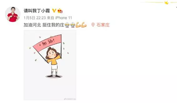 作为中国女排主力二传,丁霞被国际排联给予相当高的评价。效力辽宁女排的丁霞其实家在石家庄,也在当地学打排球。她于1月5日在个人社交媒体平台上写道:“加油河北,挺住我的庄。”1月8日,丁霞录制视频,为家乡抗疫加油:“面对突发疫情,众多医护人员逆行出征,无数抗疫工作者通宵奋战,辛苦付出,这些美丽的逆行身影温暖着我们,相信我们一定能够战胜疫情,打赢这场战胜。加油河北,加油石家庄!”据悉,正在石家庄的丁霞需要晚一些天才能归队参加冬训。