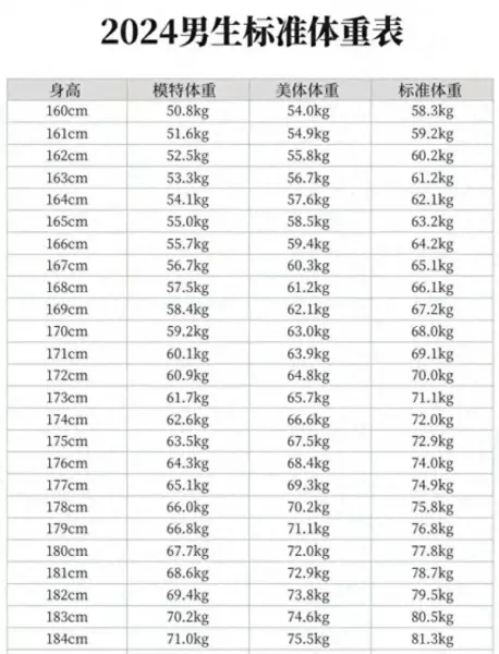 分享最新的男女标准身高体重对照表,看看你的体重是否超标了。