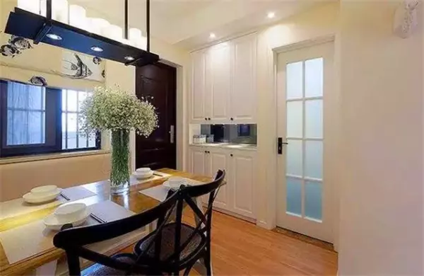 最舒服的日子就是和自己的家人可以一起吃吃饭,聊聊天,这对于在城市打拼的两个人而言是弥足珍贵的,所以我们的餐厅设计尽量的温馨。不过遵循一贯的节省空间的风格,所以餐厅选择了卡座也是为了节省空间。