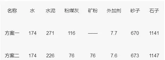 矿粉、粉煤灰双掺,各掺20%,影响系数:粉煤灰取0.8矿粉取0.98。则胶凝材料强度为:47.0×0.8×0.98=36.8MPa;