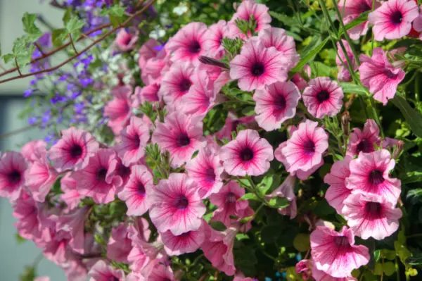 矮牵牛,在夏季和秋季提供极好的地面覆盖以及开出梦幻般色彩的喇叭形花朵。最好将它们种在阳光充足但避风的地方,并保持土壤湿润。另外,矮牵牛也非常适合用吊篮展示。