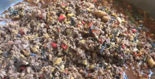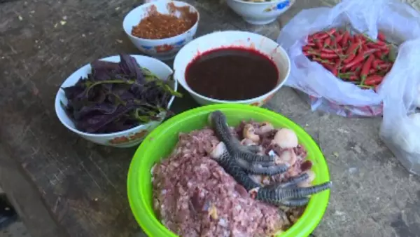 后山村村民蔡永斌家今天有客人来访,他的家人和朋友都在忙碌着做早饭。妹妹蔡永芬正在配菜,她告诉记者,以前农忙时节,苗家人都是相互帮忙,常常出现肉少人多的局面,为了增加分量和起到开胃的效果,他们会把整只鸡剁碎,用紫苏、辣椒面和生姜剁成粒,掺和在一起炒,现在这道菜已经成为了他们马关苗人家不可缺少的一道经典名菜。