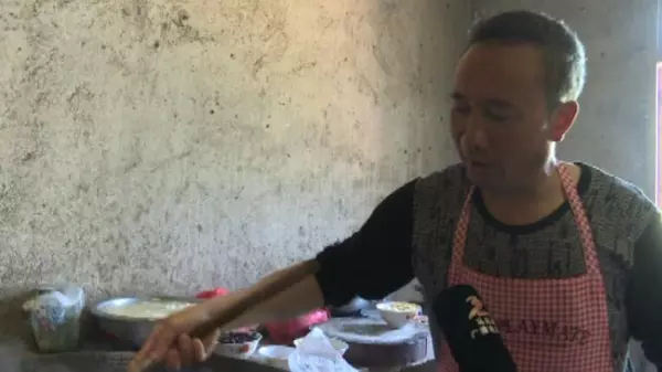 正在炒菜的蔡大哥介绍说,紫苏叶可以直接食用,还可以煮了吃,拌凉菜时还可以作调料,但是在做紫苏皮干参时,得注意放菜的先后顺序,先把鸡肉炒黄,放紫苏后再放其他佐料,这样炒出来的味道才鲜美。