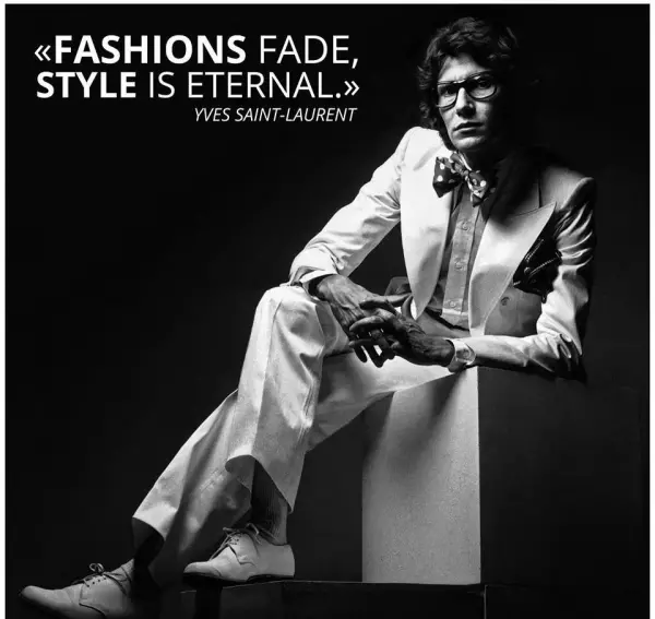 对时尚界的遗产和贡献不容小觑。他的时尚感在Fendi,Chole,Chanel,Karl Lagerfeld等品牌中得以延续。一眼就能认出的个人风格:雪白的头发扎成“马尾辫”,墨镜隐藏着视觉缺陷,西装很窄。