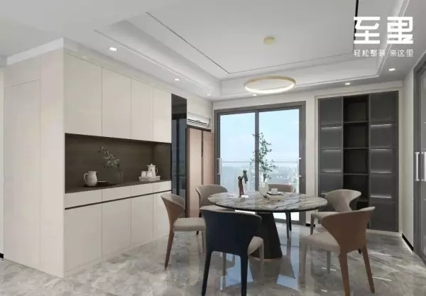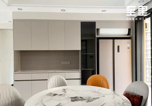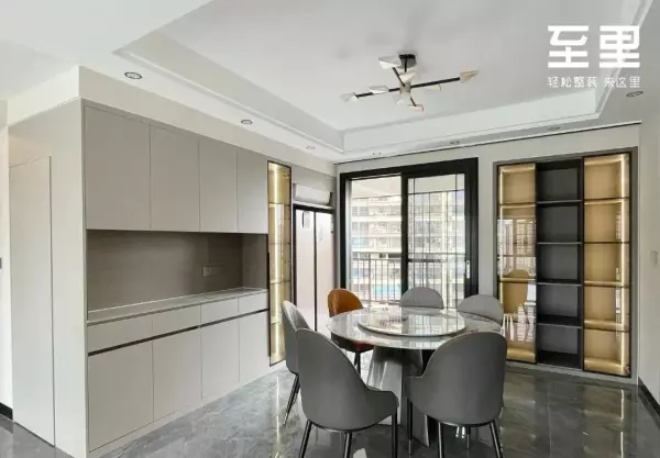 内嵌的家电、发光的玻璃柜,规整靓丽舒适