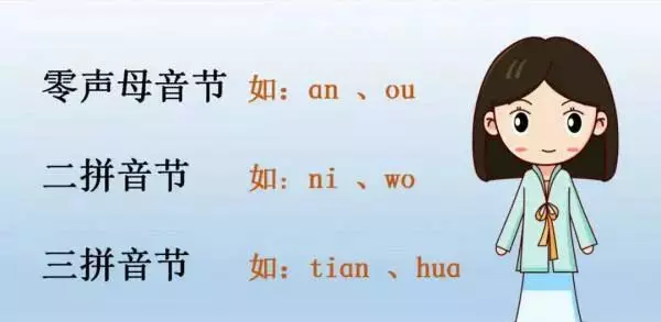 零声母:就是韵母自身发音。例如:安(ān),袄(ǎo),鸥(ōu)。