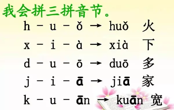 拼读时,要读得轻,短,不重。由声母连接作为介音的韵母“ i 、u 、ü”,再连其他韵母,一口气快速地拼读成一个音节。