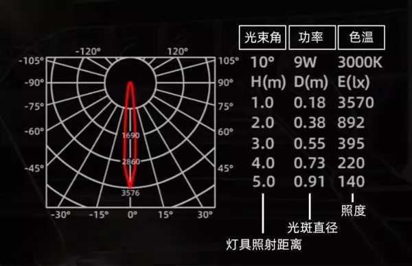 下面的第一列是灯具的照射距离。