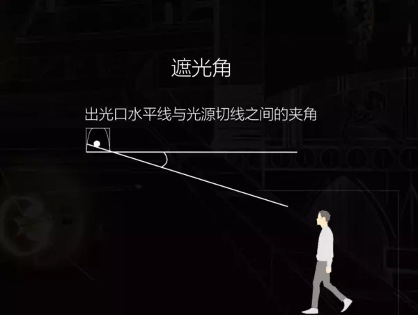 1. 什么是遮光角?2. 什么是光束角?3. 配光图的认识及应用01.什么是遮光角?遮光角是指出光口水平线与光源切线的夹角,也就是这两边夹角的位置都属于遮光角,遮光角能保证人们在一定的视角范围内,不直接看到光源所以遮光角越大,同时意味着防眩功能也就越强