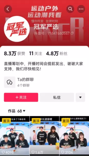 双11结束后,冠军严选的抖音账号也停止了运营,账号的简介显示“直播筹划中……我们尽快相见”。