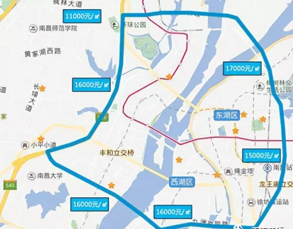 带五湖:以五湖为带,指的是五个湖泊围绕着南昌,如同南昌的腰带一般,也是一个非常形象的比喻,如下图所示。