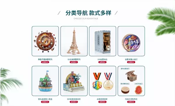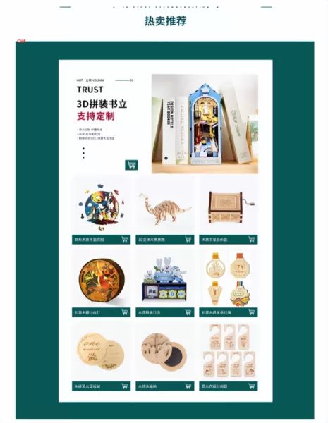 在公司介绍下方,还可以添加一屏或两屏热销品或促销品的小海报模块,用来提炼出店铺内销售最好的那些产品供给买家查看,由于这些产品表现较好,往往也能增强买家询盘的几率。